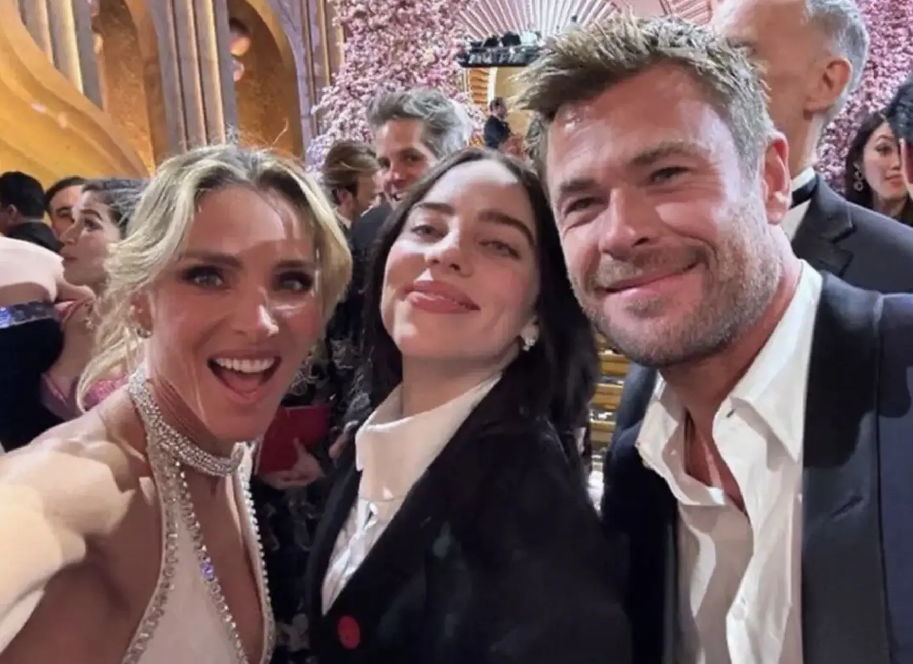 The selfie in question features Eilish sandwiched between Hemsworth and Pataky inside the Dolby Theatre at Ovation Hollywood on March 10, 2024.