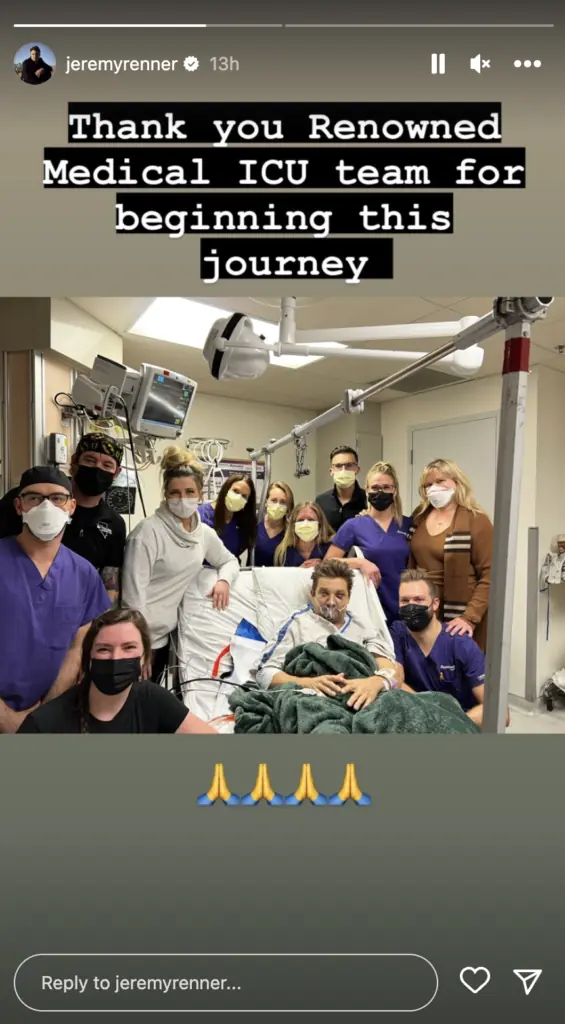 He thanked the medics for looking after him. Credit: InstagramRenner turned 52 today (January 7) but will be spending the occasion at Renown Regional Medical Center in his home state of Nevada.