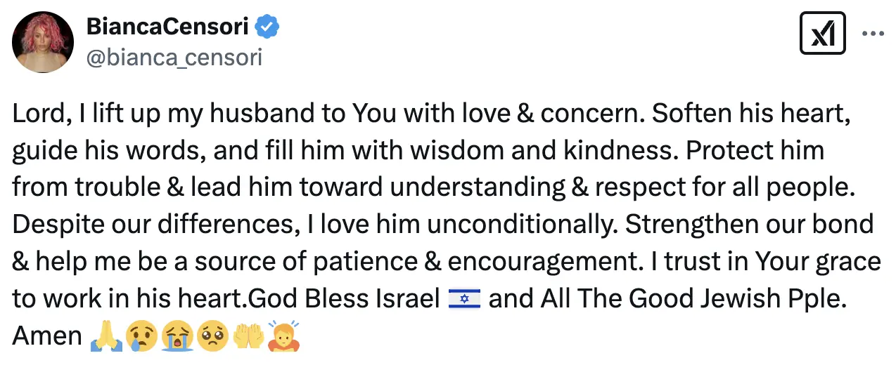 Censori concluded her message with a blessing, stating, "God bless Israel and all the good Jewish people. Amen."