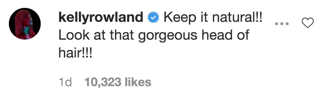 Former Destiny's Child star Kelly Rowland commented: "Keep it natural!! Look at that gorgeous head of hair!!!"