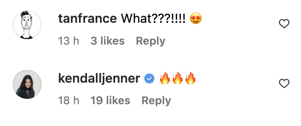 Celebrities such as Tan France and Kendall Jenner also left their kind words (and emojis!) under the post.