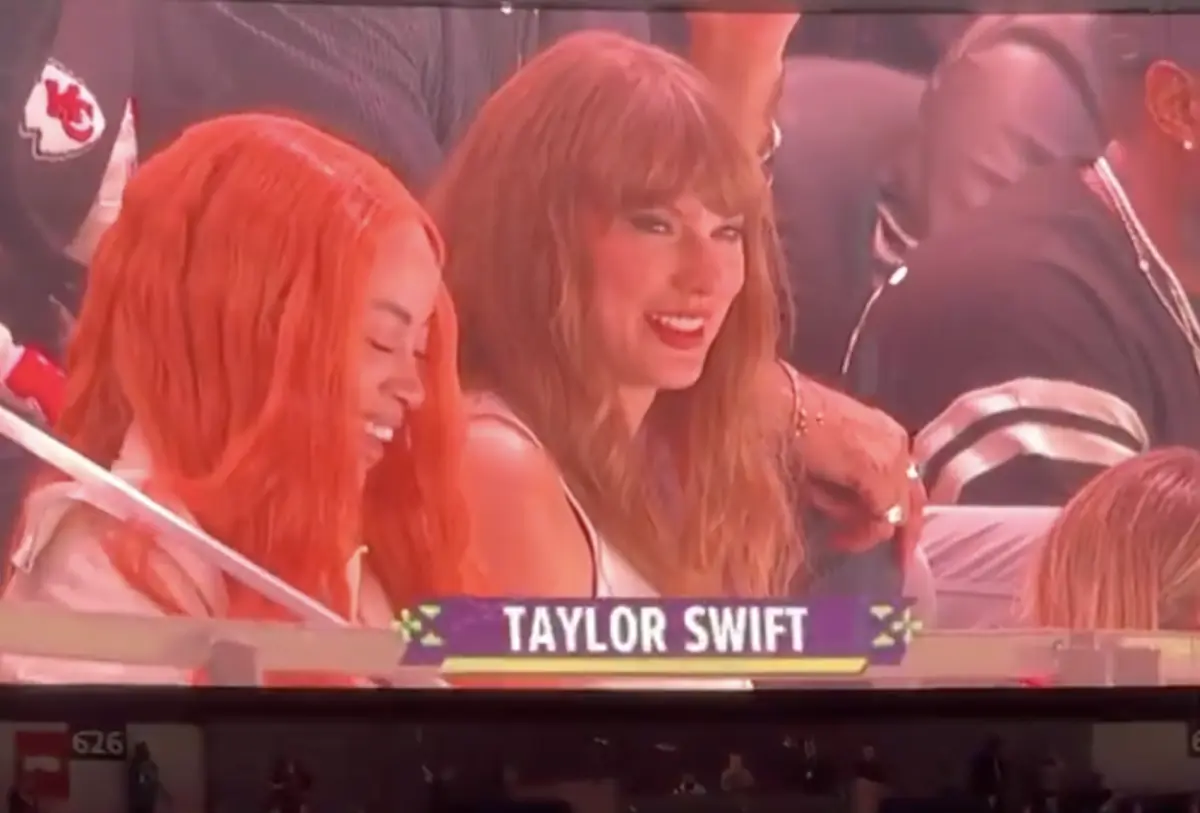 The singer was seen exchanging glances with her companions - rapper Ice Spice and the Haim sisters - before offering the camera a subtle side-eye.
