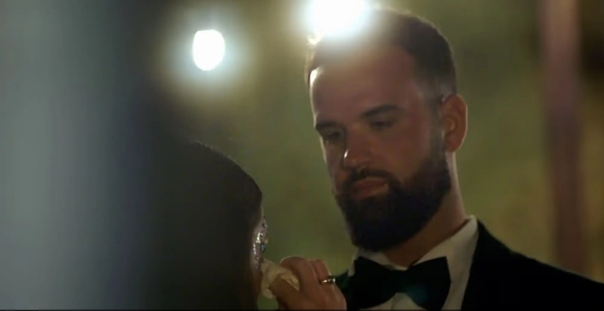 Sharmayne initially seems eager to take part, mingling as a pair and then splitting off to speak with others solo. But the moment she watches Jamie engage with someone else, her composure cracks.
