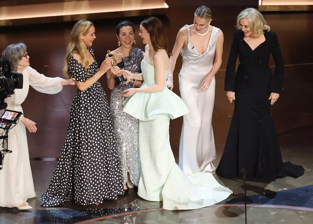 Former Best Actress winners Michelle Yeoh, Jennifer Lawrence, Charlize Theron, Jessica Lange, and Sally Field took to the stage to present the nominees for the Best Actress accolade this year.