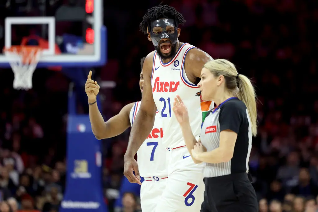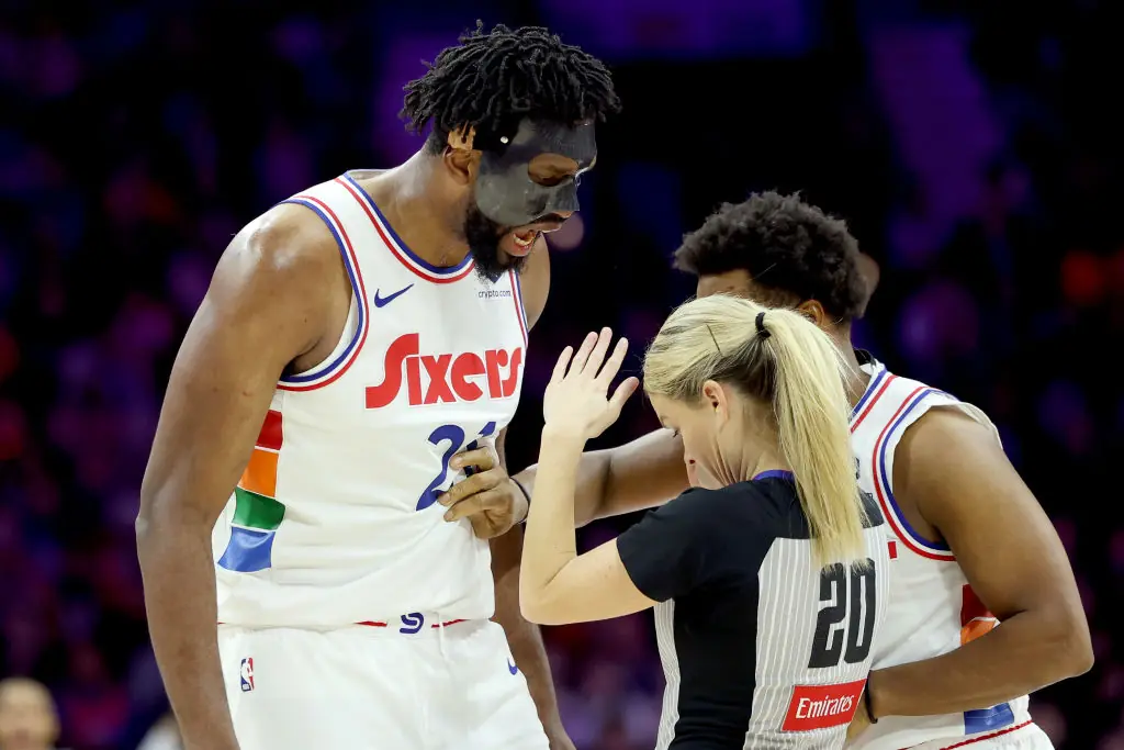 Joel Embiid had a furious rant in the face of a female referee during an NBA game, and has been slammed for his outburst