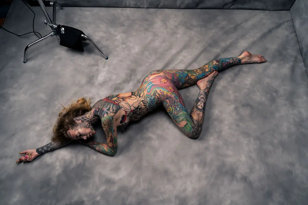 She now has 95 percent of her body covered in tattoos, including her genitals, which she chose to get inked after feeling like they "stood out" by not being done.