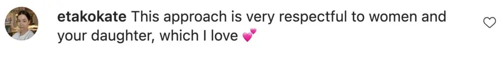 A second added: "This approach is very respectful to women and your daughter, which I love".