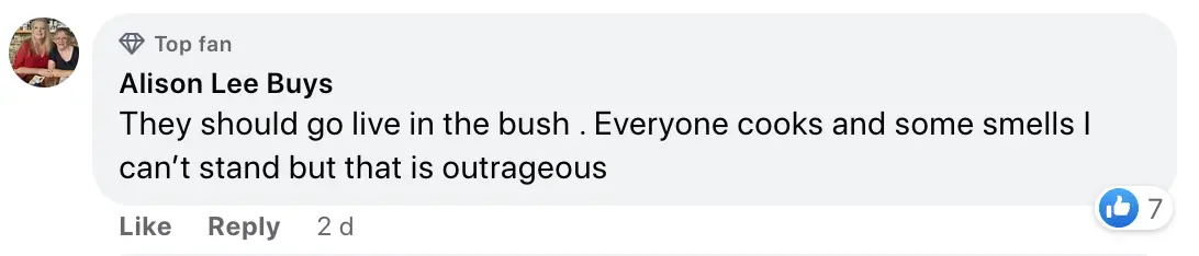 Another user interjected: "They should go live in the bush. Everyone cooks and some smells I can’t stand but that is outrageous."
