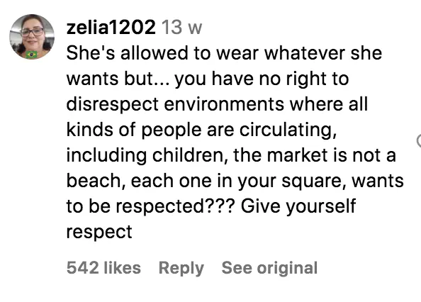 One user wrote: "She's allowed to wear whatever she wants but... you have no right to disrespect environments where all kinds of people are circulating, including children, the market is not a beach, and each one in your square, wants to be respected??? Give yourself respect."
