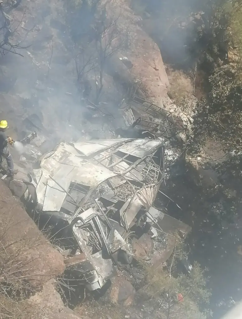 The fatal incident unfolded when the driver reportedly lost control of the bus, causing it to plummet approximately 50 meters (164 feet) below the bridge onto a rocky surface, where it subsequently caught fire.