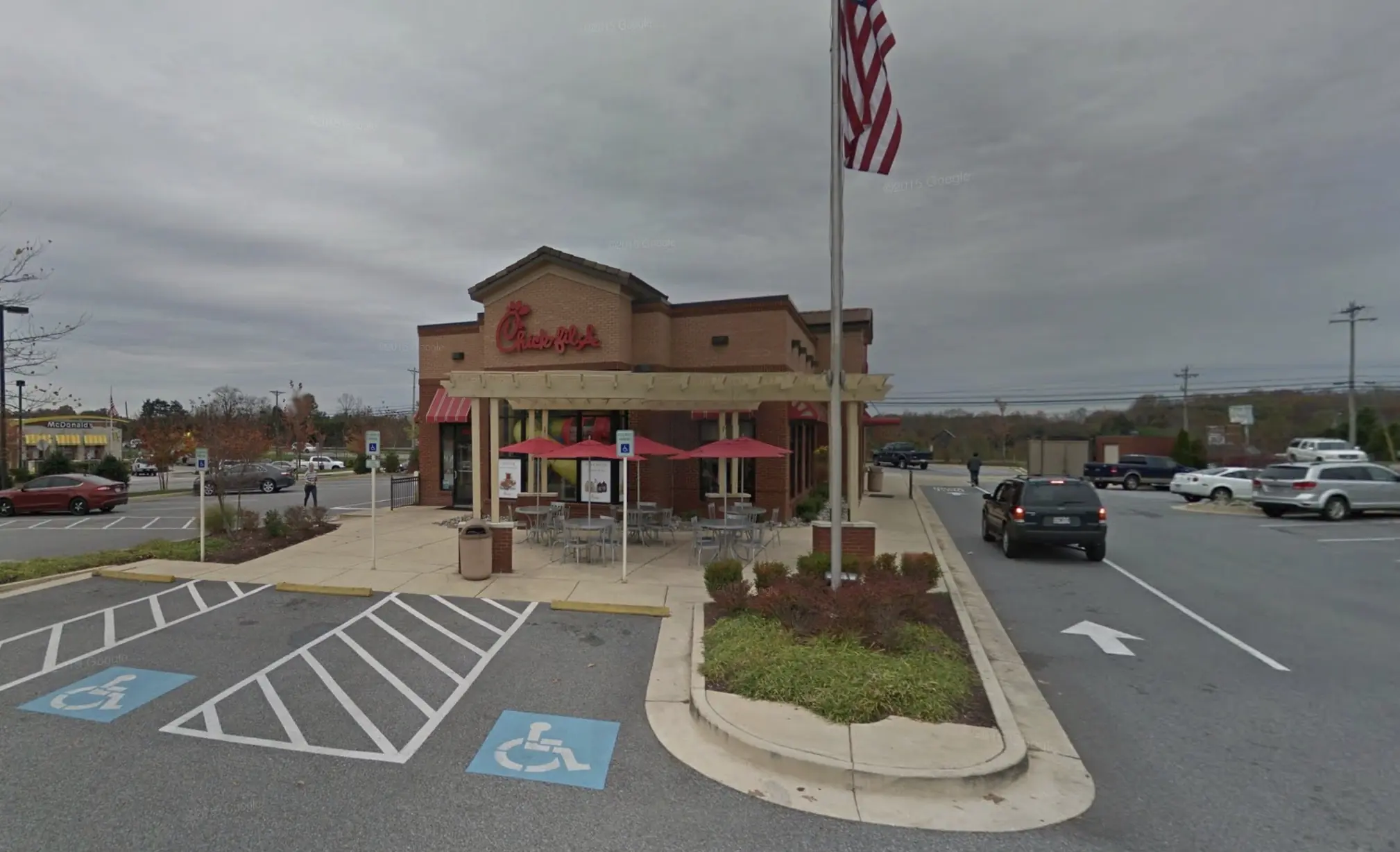 The incident occurred at the LaPlata Chick-fil-A in Maryland. Credit: Google