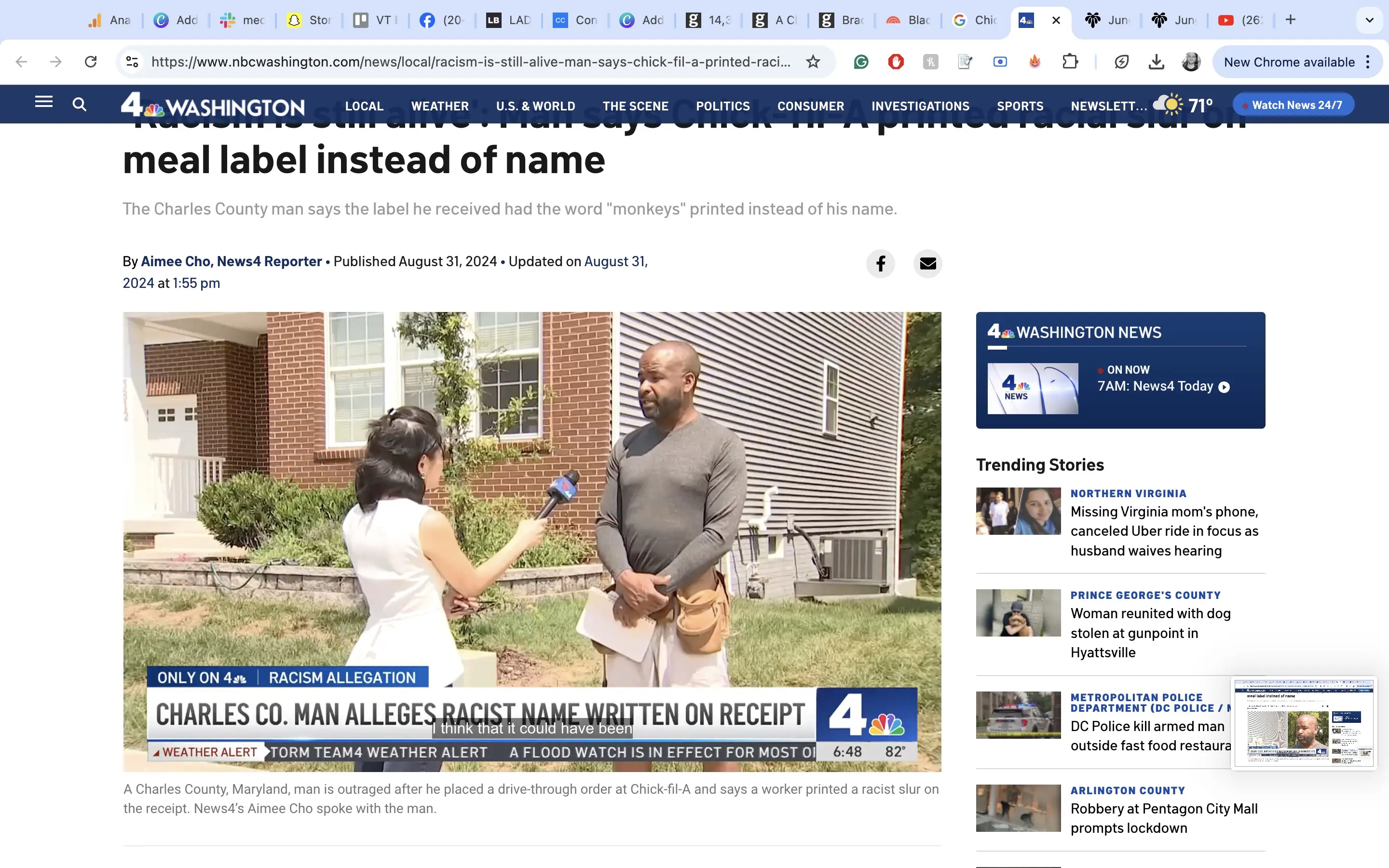 Although staff from the LaPlata Chick-fil-A branch declined both TODAY and NBC4's opportunity to comment on the incident, the corporate office has issued the following statement: "This Chick-fil-A is independently franchised and operated. The franchisee of this restaurant has apologized to the guest.