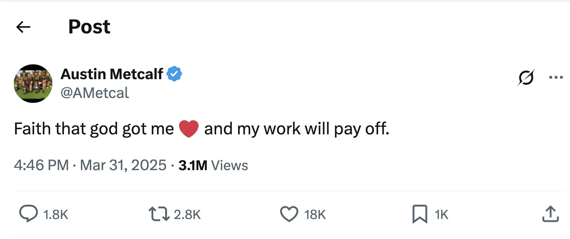 Austin's final social media post before his death. Credit: X (Screenshot)