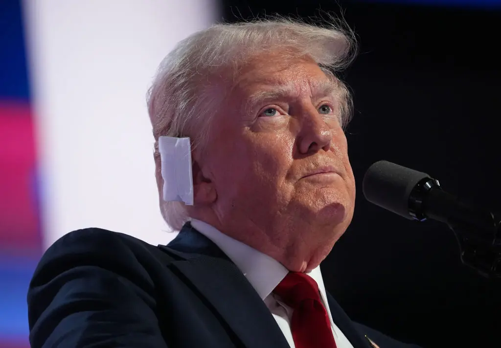 The 78-year-old was seen grabbing his ear before ducking for cover when a bullet grazed past him while he was delivering a speech to his loyal followers. One person behind him was killed and two others were injured as a result.