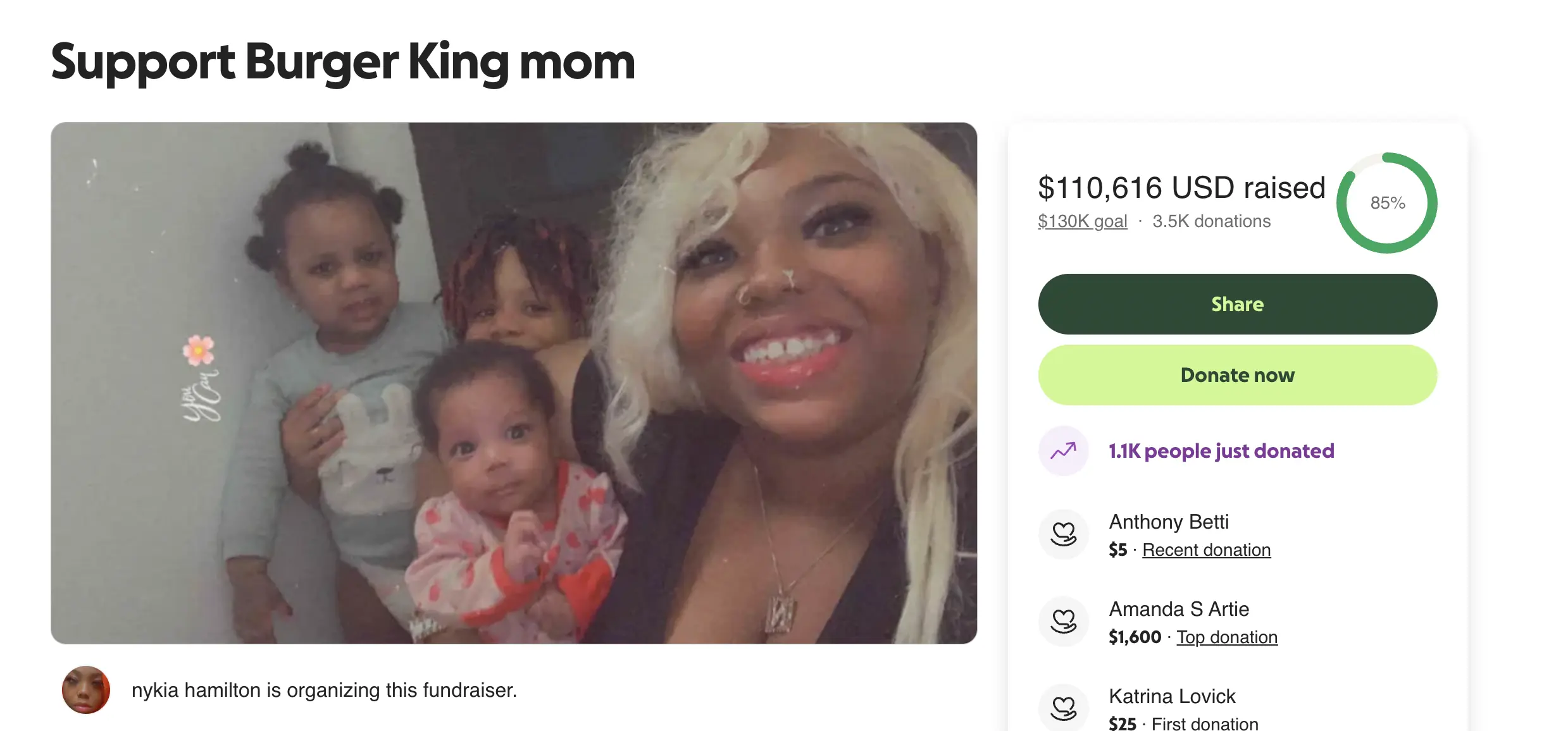 Nykia Hamilton, a 25-year-old mother of three, became the subject of viral attention after a TikTok video showed her juggling multiple responsibilities at a Burger King in Columbia, South Carolina.