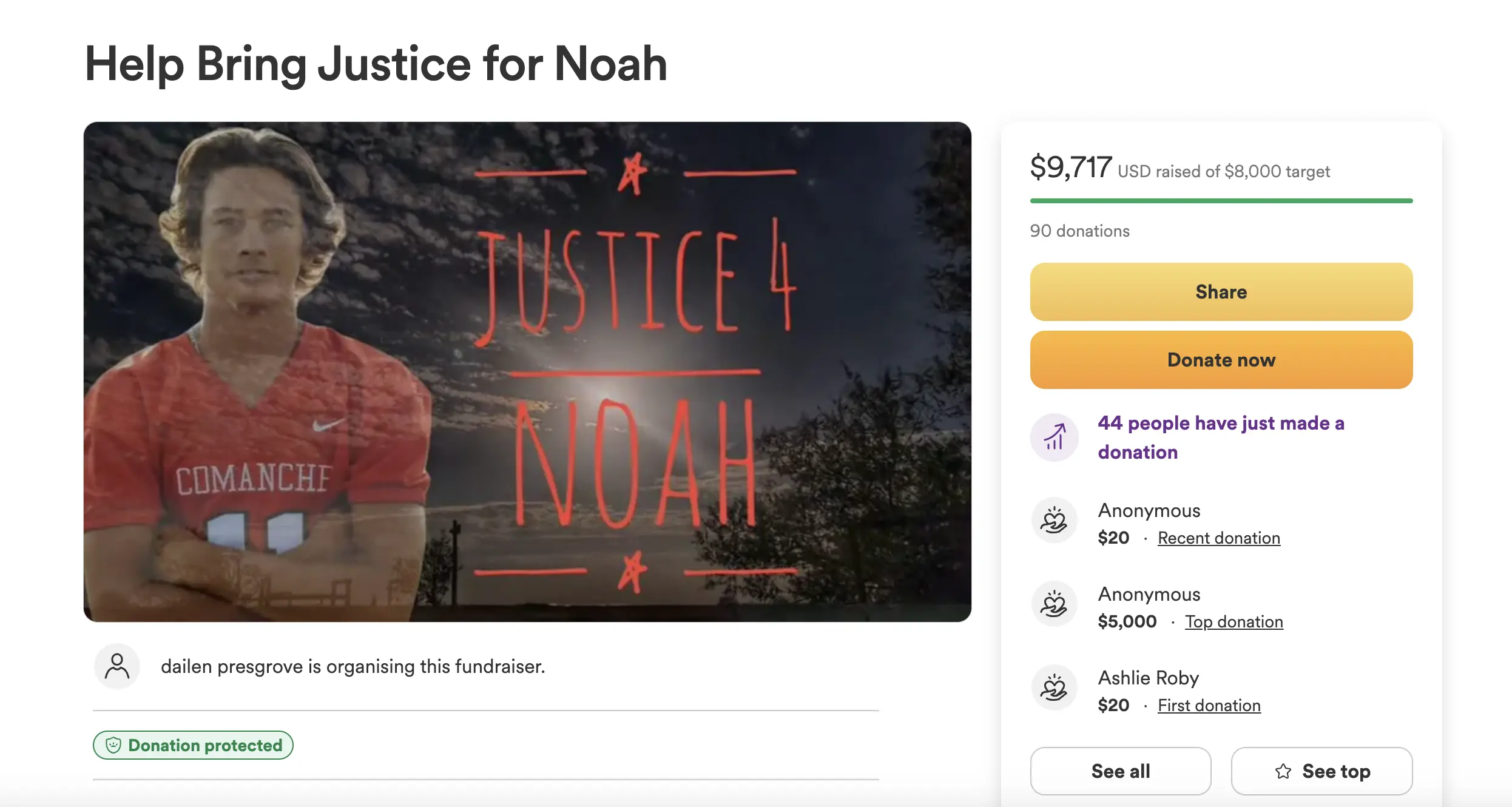 "And it doesn’t make sense that a good person like Noah is gone in such a cruel and unknown way," he concluded.
