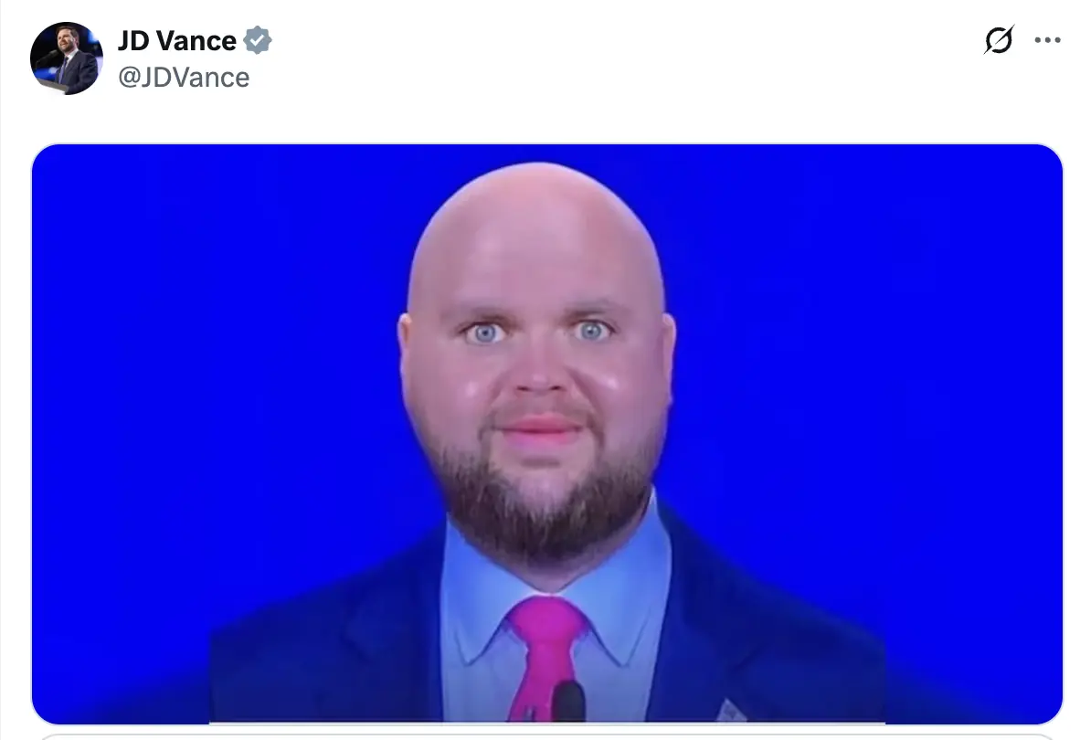 Yes, the VPOTUS is sharing memes of himself online now - this is America, this is 2025.