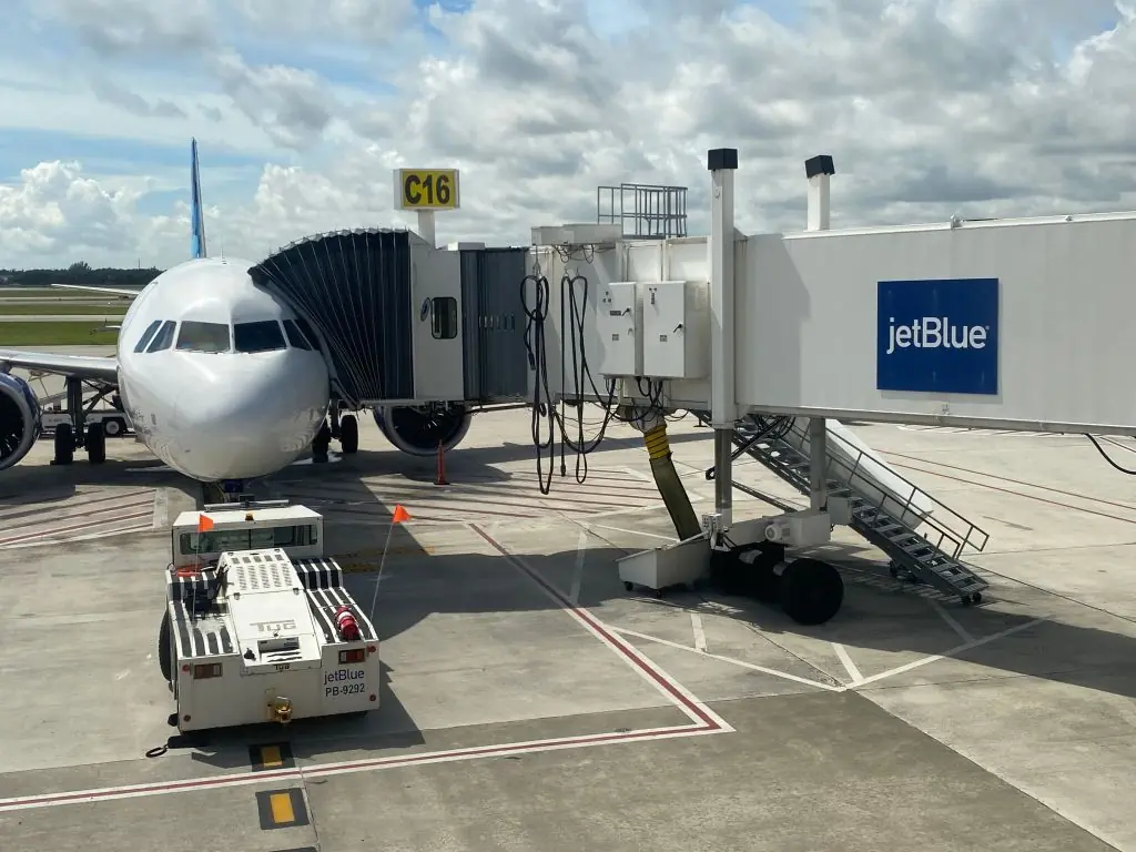 A JetBlue flight departed from JFK airport in New York shortly before 8PM on Monday (January 6) and landed at Florida'a Fort Lauderdale-Hollywood International Airport 28 minutes behind schedule.