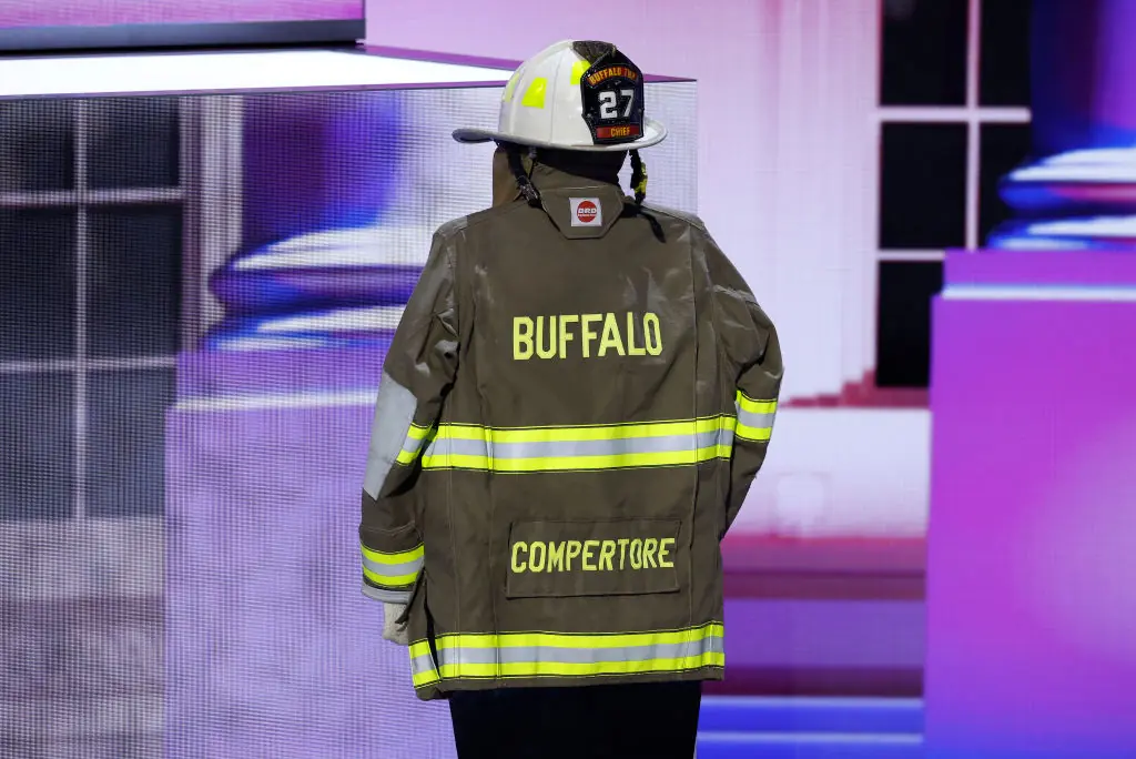 A post from July 14 from WTAE reporter Yazmin Rodriguez shows the jacket hanging outside of the Buffalo Township Volunteer Fire Department with the same spelling "Compertore" rather than "Comperatore."