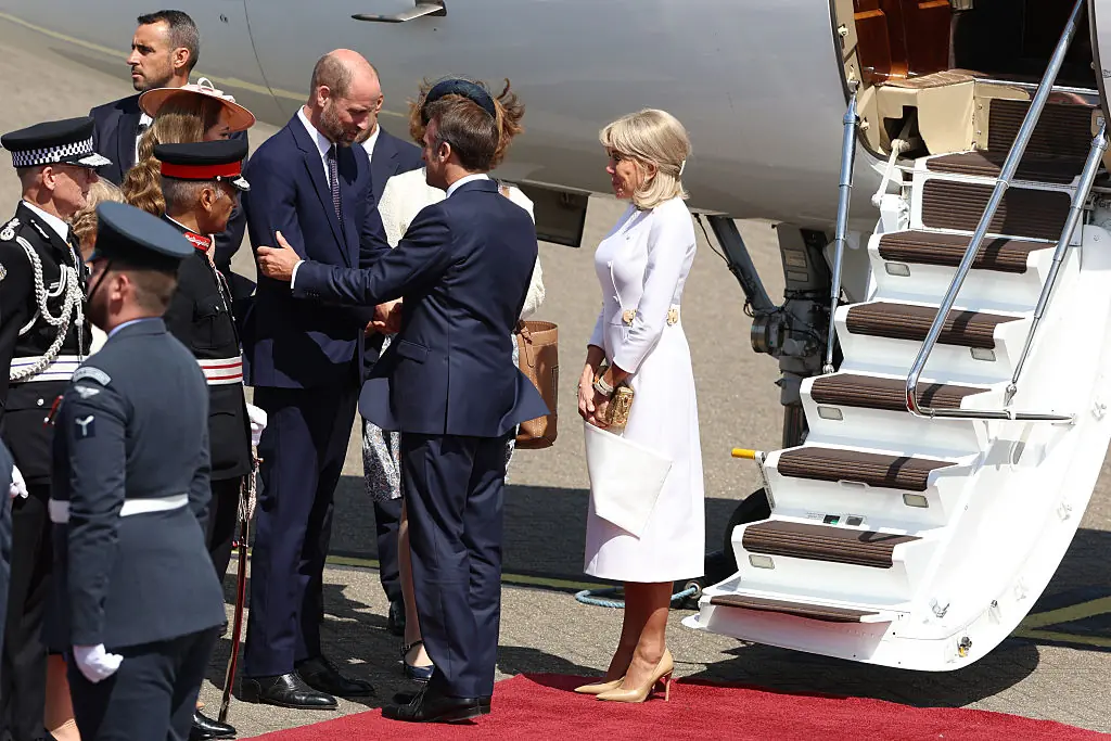 Though she smiled at him once she reached the tarmac, Macron had already dropped his hand in what appeared to be a slightly uncomfortable moment. The situation became more noticeable when, moments later, he turned to warmly greet the Princess of Wales by kissing her hand, with Prince William also present to welcome the French guests.