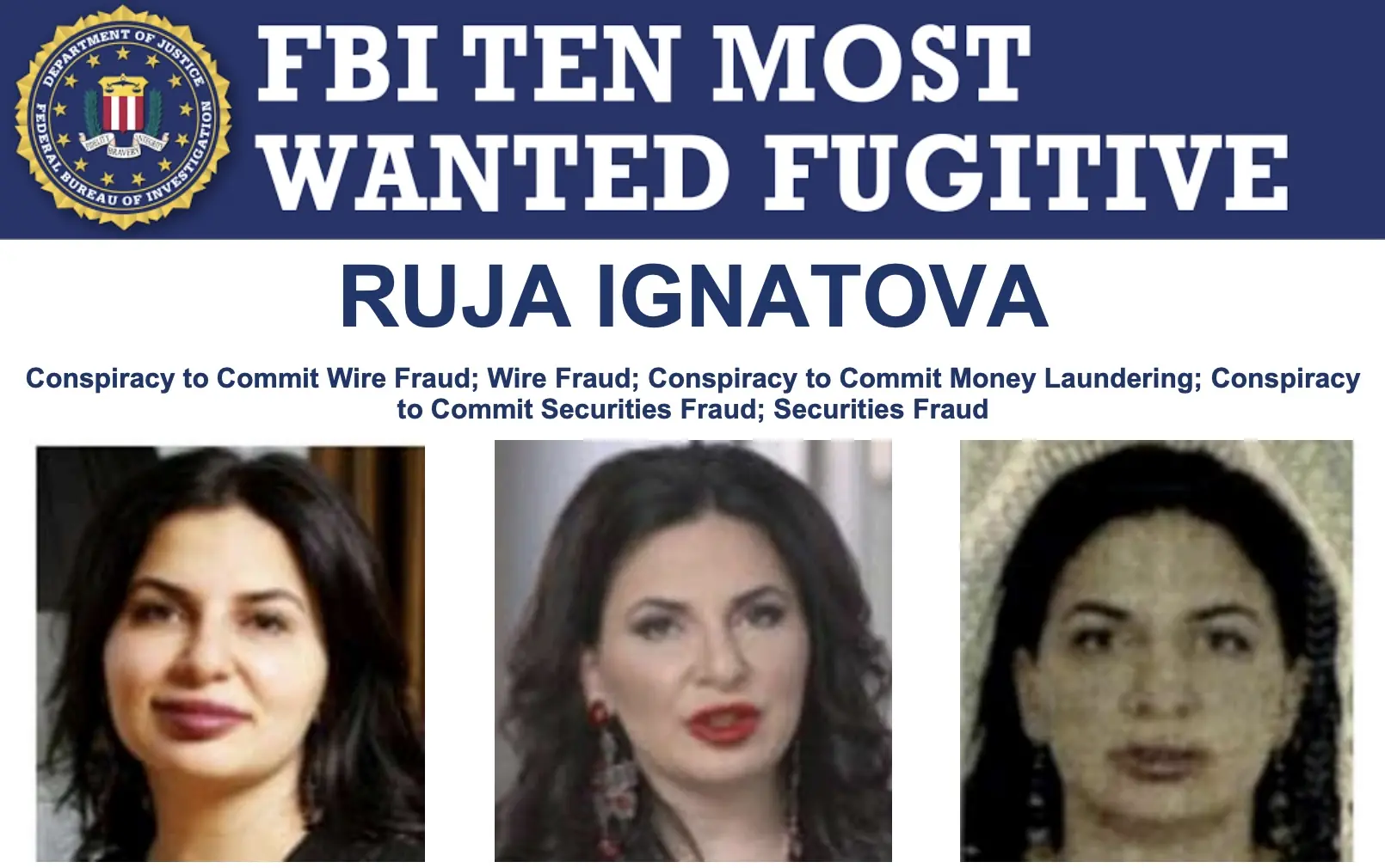 According to the FBI's wanted poster, Ignatova is believed to move with armed guards or associates and may have altered her appearance through plastic surgery or other means.