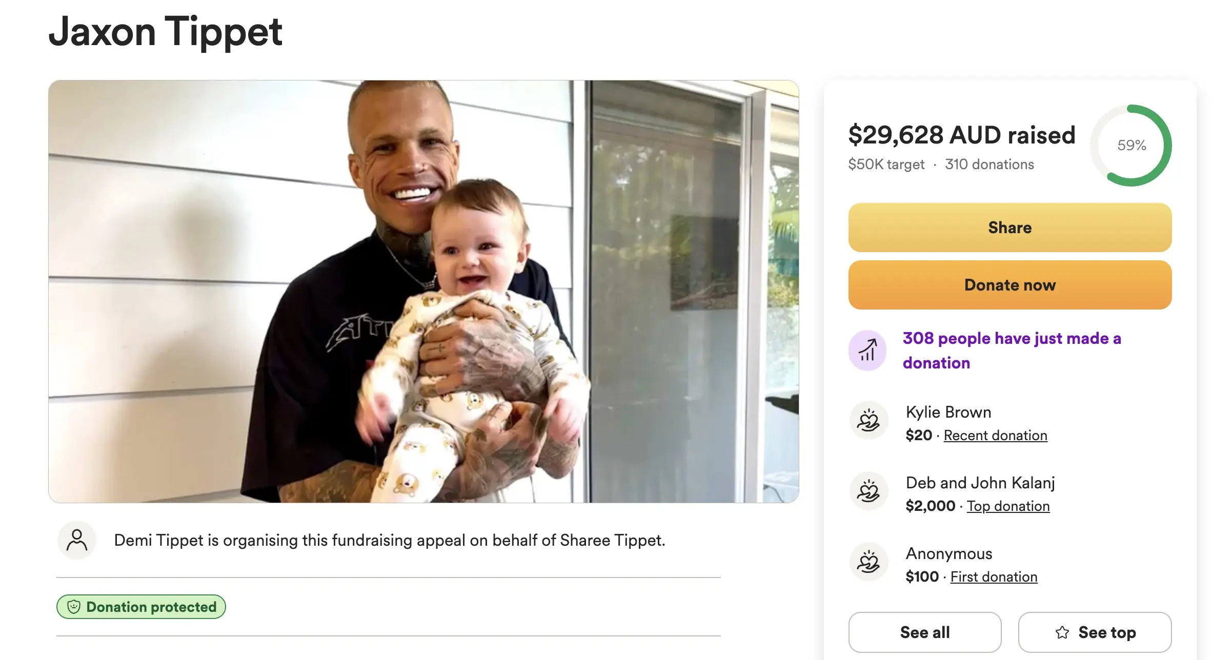 As of this writing, more than $29,600 AUD has been raised to help support Tippet's family.