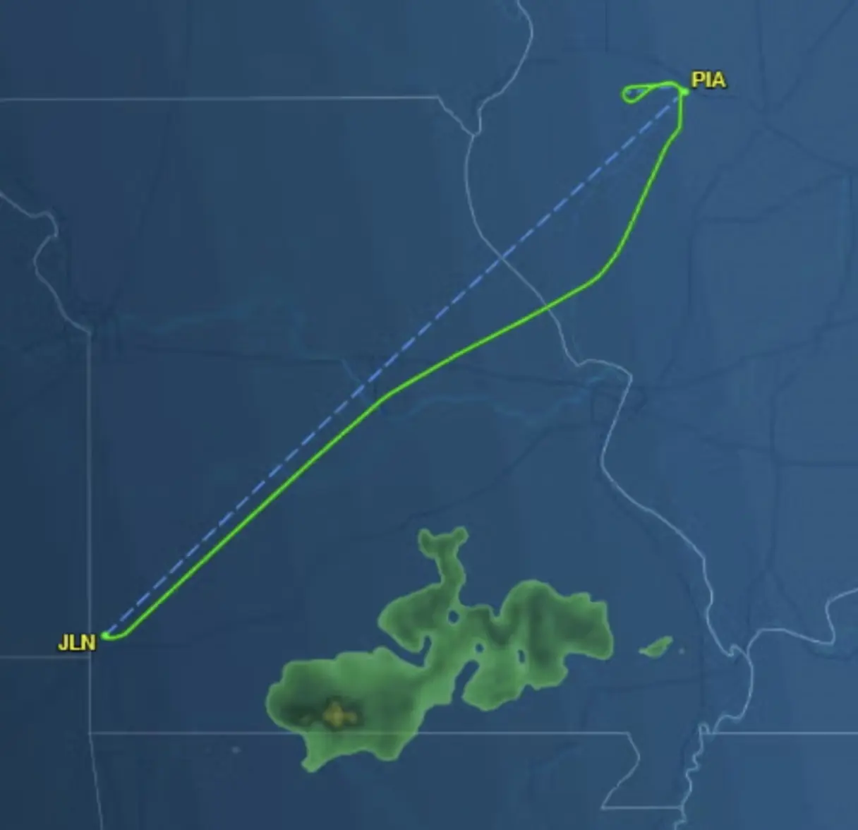 The aircraft left the airport at 5:51AM and was forced to make an emergency landing 42 minutes later at the Peoria International Airport in Illinois, per Flight Aware, which tracks flight paths.