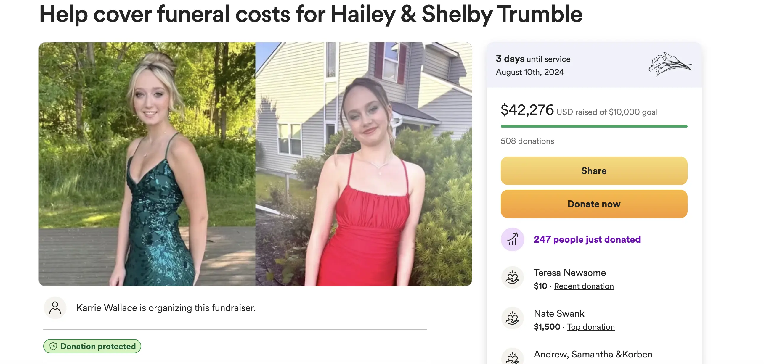 A GoFundMe has now been set up for the Trumble family. The money will go to funeral expenses and unforeseen medical bills. A service for the teenagers will be held on Saturday, August 10 at Traub Funeral Home in Central Square.
