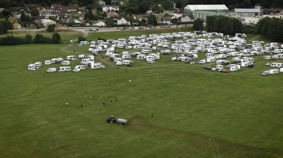 Video footage shows the farmers confronting what they described as an “illegal Gypsy camp” that had set up without permission.